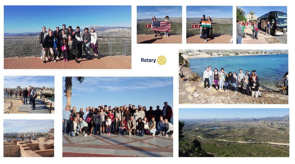 En esta excursión aparte de familiares y amigos nos acompañaron los 12 jóvenes de intercambio de Rotary en la comarca 6 americanos, 2 australianos, 2 indios, 1 coreano y una alemana. El día fue fantástico, nos acompaño una climatología estupenda y con un día claro desde el mirador de la entrada de la cueva teníamos una vista amplia de la comarca del Alacanti. Luego la visita al yacimiento de la illeta dels